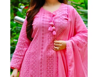 Beautiful Cotton Heavy Chicken Sequence Work Kurti With Pant Etsy